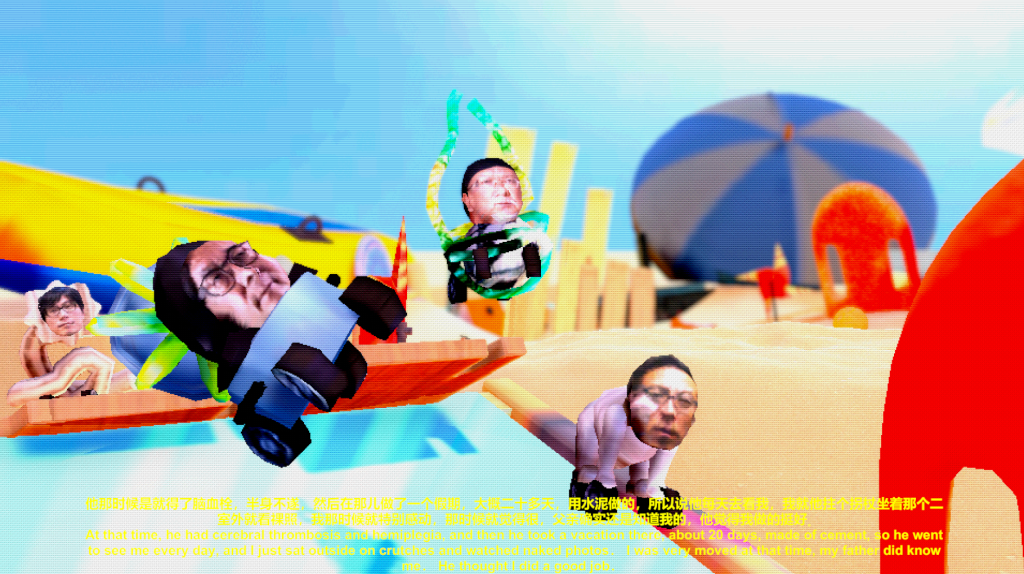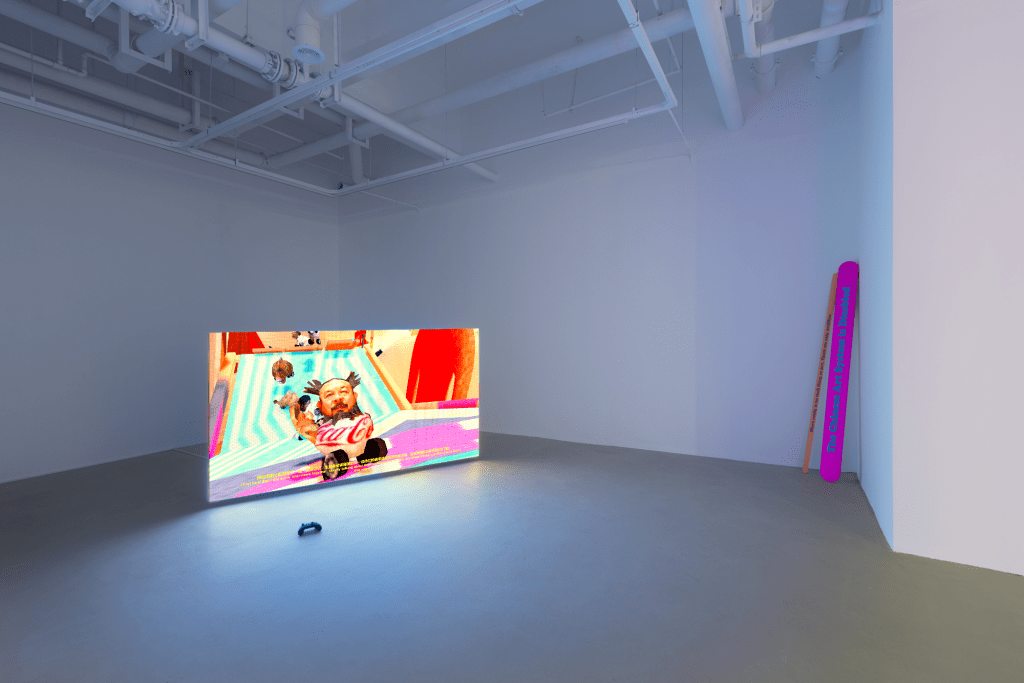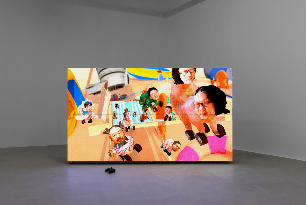 At this moment, 12 renowned Chinese contemporary artists take on the role of Pokémon and become ArtíMon ( Artist Monster ) in a never-ending Kart Racing. The race venue is a very stereotypical vacation scene, with a beach, sand, umbrellas and beach chairs, all of which surround a miniature toy car track for vacationers to play on. Paper cut-outs of some of the West’s most prestigious contemporary art galleries were interspersed throughout the course. On this art road, the artist babies need to find ways to write their names into history and land in the halls. Balls, sand shovels, shells and rocks are the stumbling blocks in the ArtiMon race, making them turn the wheel and miss out on opportunities.