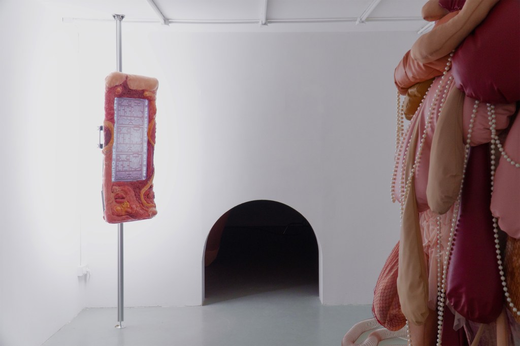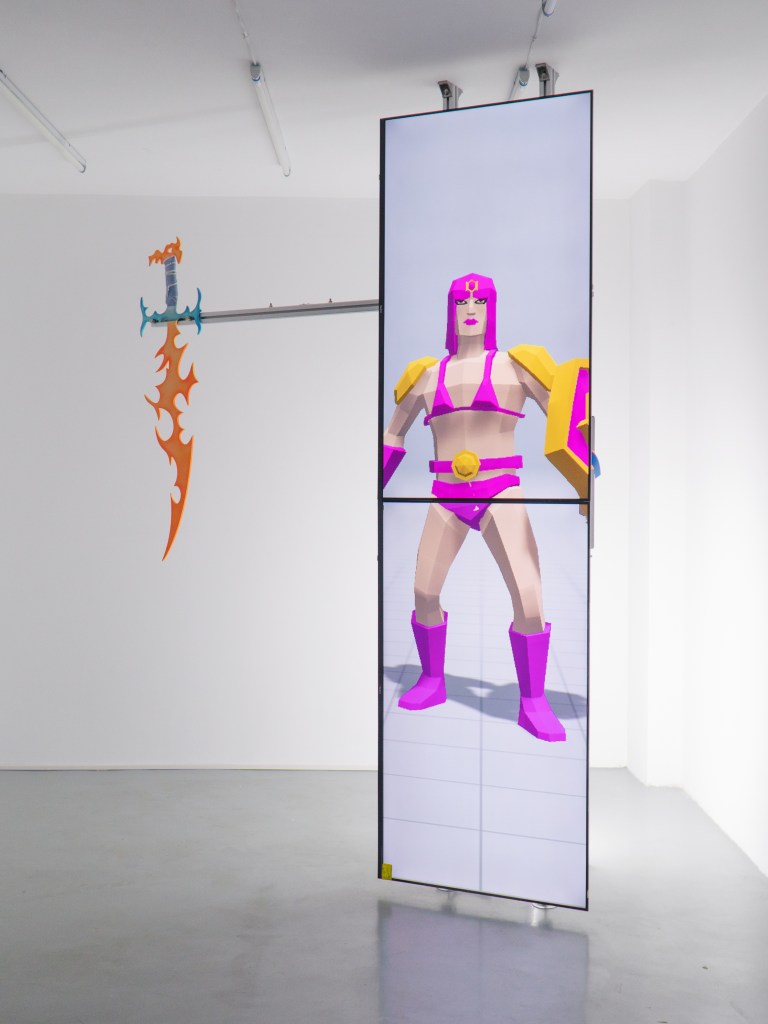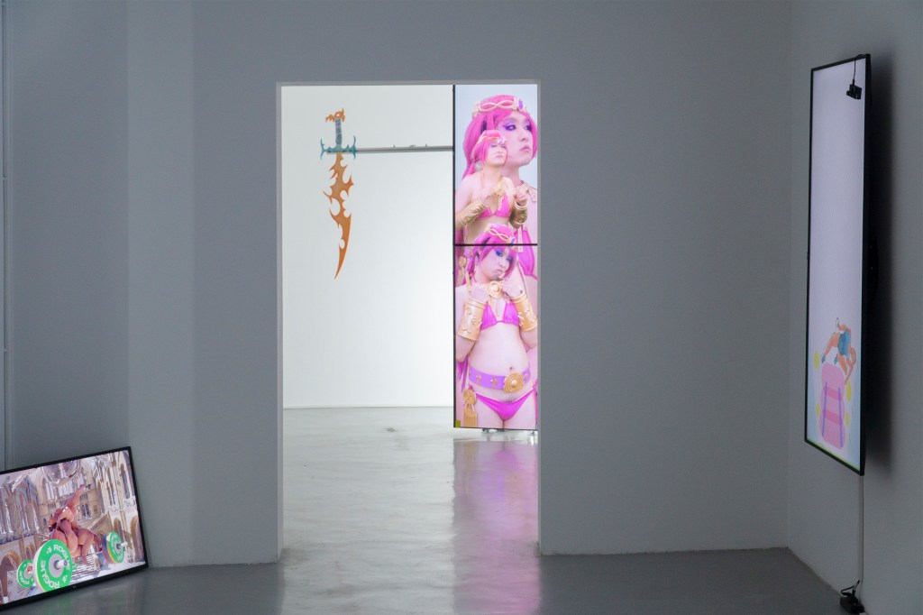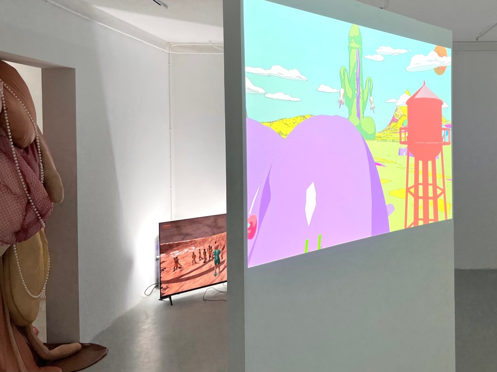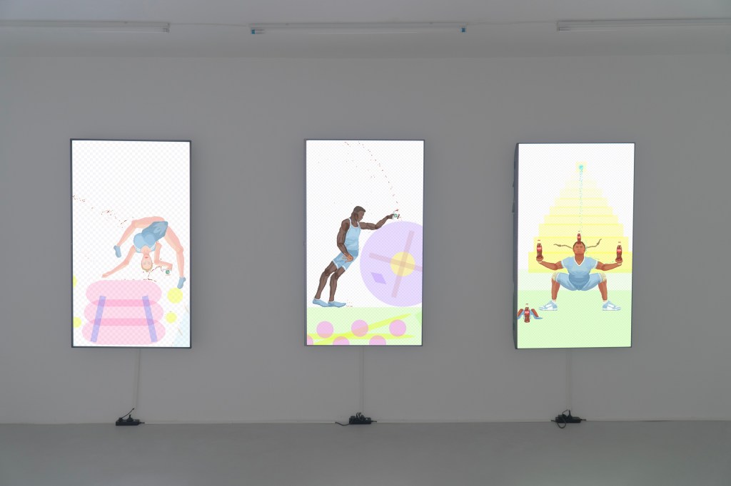 As the final chapter of the “Post-Genitalia Fetishism” trilogy, Xia Han invites the audience to immerse themselves in a gamified space through video games, animation, installations, and paintings, experiencing what Fredric Jameson called “a cultural form of shallowness and aesthetic homogenization in a society where the market economy and consumerism dominate, under the highly developed productivity.” The exhibition seems like an inescapable game scene, where the giant beauty instrument that rises from the exhibition hall is like a butt plug covered in lumps, and humorous sex toys run back and forth in the arena attacking inflatable dolls with different textures. Sports enthusiasts perform high-difficulty circus acts while holding a globally best-selling beverage… Capital uses power to make everything into pan-entertainment and symbolism, cultivating thousands of “fetishists” who can get high from symbols. In the highly electronic modern society, pleasure is used to manage people’s desires, thereby achieving spiritual control over everyone. In such a world, everyone is a semiotics master.