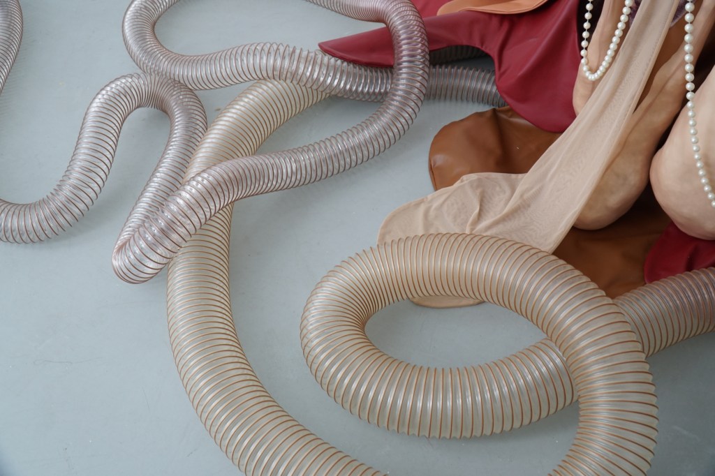 Artificial leather fabrics, nylon fabrics, silicone, cotton, acrylic pearls, machine-carved wood panels, polyurethane ducts, 2.3m*2m*2m